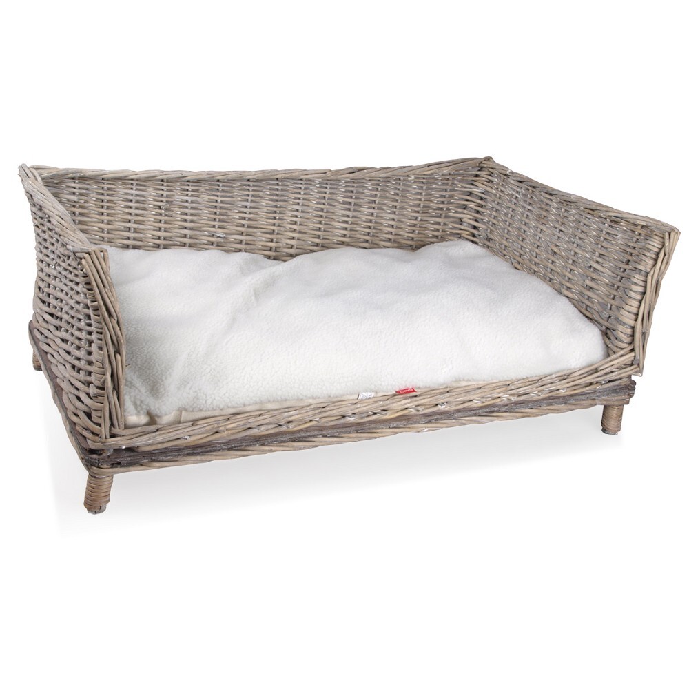 Proutěné kanape pro psy s povrchovou úpravou ve stylu Provence.• nepřehlédnutelný design• prostorné s pevným dnem• oboustanný polštář s bílým umělým beránkemRozměr:90x54x35cm prečítať celé