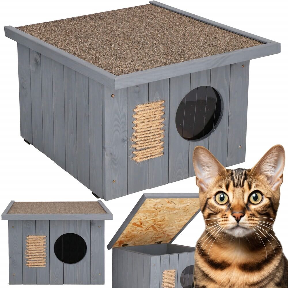 Zateplená kočičí bouda z odolného impregnovaného dřeva a dodatečnou izolační vrstvou pro maximální tepelný komfort. Lamelová clona vchodu, otevírací střecha pokrytá lepenkou, podlaha na plastových patkách. Ideální útočiště pro kočky a další zvířata za každého počasí.Zateplené stěnyVenkovní...