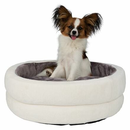 Kulatý pelíšek LEVI s polštářem plyšový, krémovo/šedý - DOPRODEJ - ø 65 cm