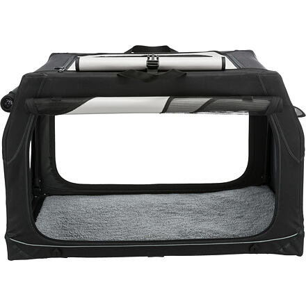 stabilní kovová konstrukce s rychloupínacím mechanismem lze otevřít ze 3 stran se síťovými vložkami pro dobré proudění vzduchu horní síť lze přikrýt pro ochranu zvířete uvnitř suchý zip pod boxem zabraňuje klouzání odnímatelná zástěra ochraňuje nárazník před poškrábáním může být také... prečítať celé