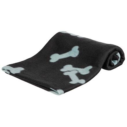 Flísová deka BEANY 100x70cm - černá s béžovými tlapkami