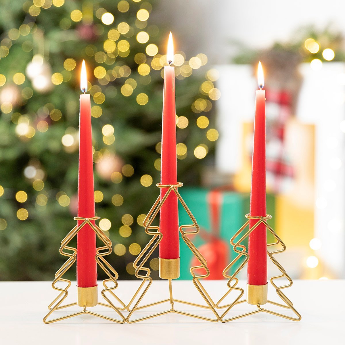 Vánoční svícen | STEARIN | zlaté tři vánoční stromky | 28x6,5x15cm | 833309 Homla