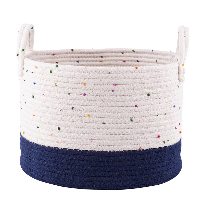 TKANÝ KOŠÍK 32X32X22CM BÍLÁ A NÁMOŘNICKÁ MODRÁ