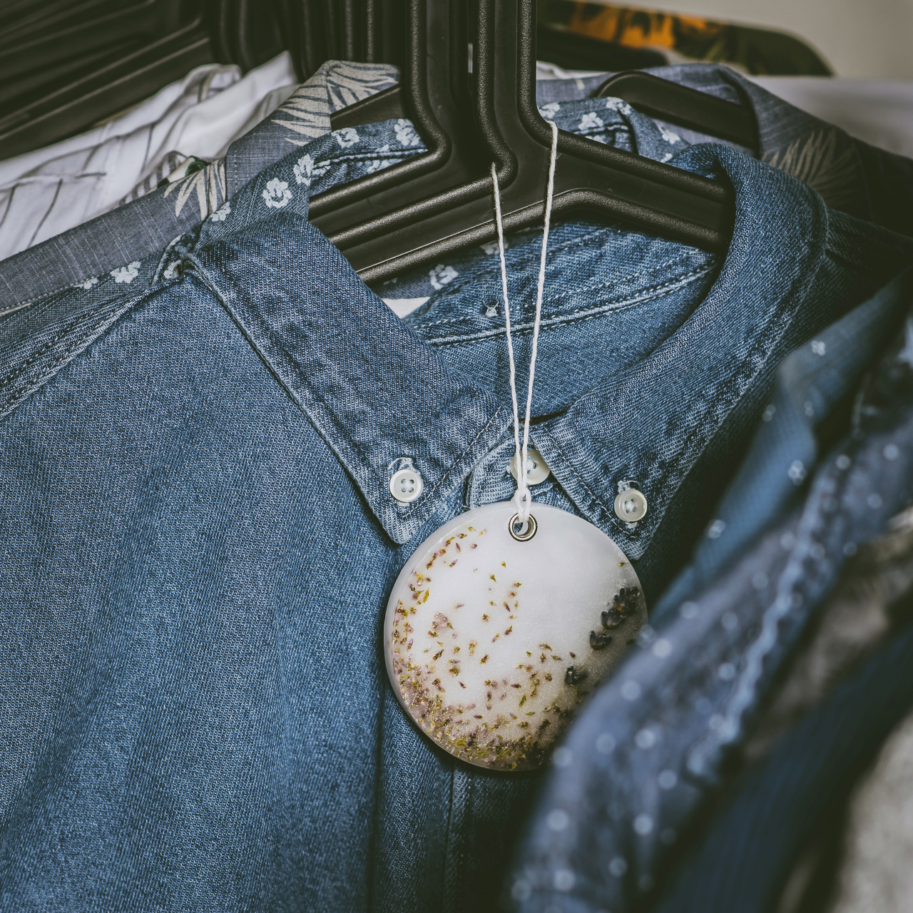 Zavěšená na šňůrce a vložená do organzového pytlíčku.Slouží pro provonění šatníků, skříní, šuplíků, aut.