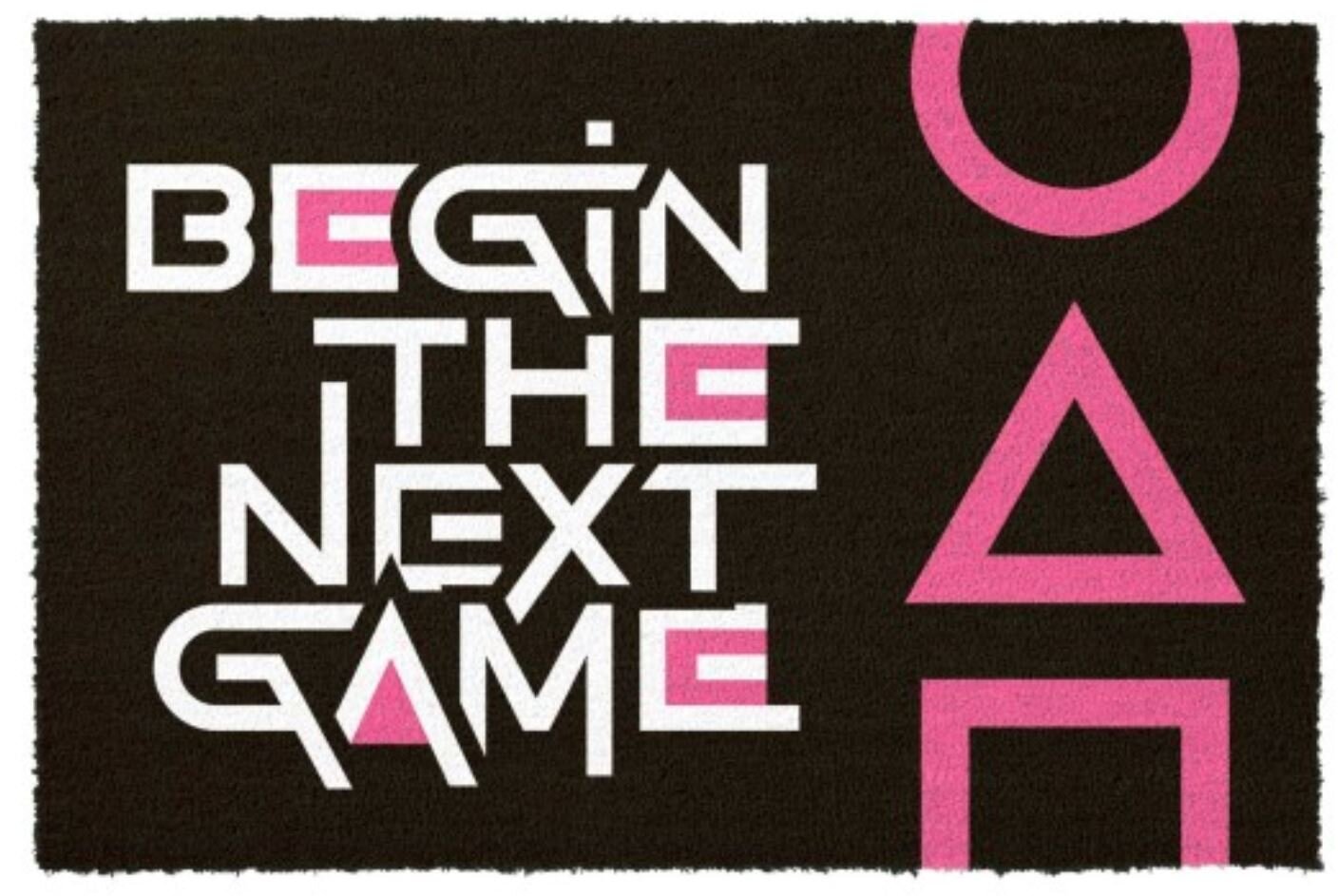 Oficiální produkt - rohožka z katalogu produktů s licencí populárního dramatického serálu Hra na oliheň (Squid Game) od společnosti Netflix.Zboží je legálně licencováno a prodáváno se souhlasem vlastníků licenčních práv.Černá rohožka s růžovými detaily a bílým nápisem "Begin The Next Game" (v...