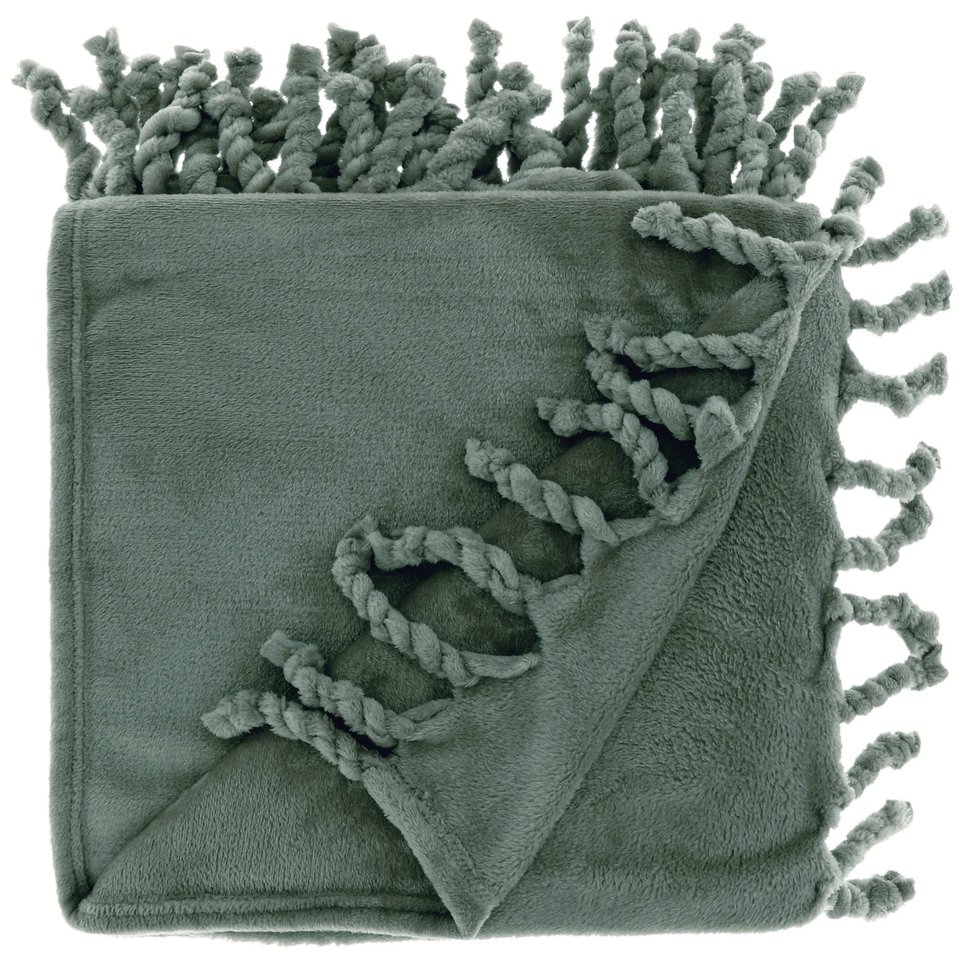 Hřejivý pléd s třásněmi Lieke vavřínově zelený