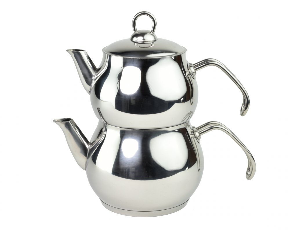 Turecká dvojkonvice caydanlik z nerezové oceli pro přípravu tradičního tureckého čaje rize. Nepostradatelná výbava každého milovníka rize.Parametry: Horní konvičkaObjem: 0,9 lVýška: 14 cmŠířka: 24 cmPrůměr: 13 cmDolní konvičkaObjem: 1,6 lVýška: 16 cmŠířka: 28 cmPrůměr: 15 cmVýška kompletu: 25 cm