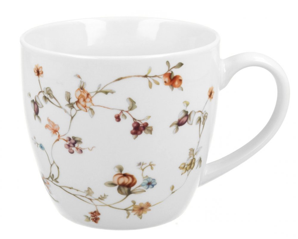 Edici zdobí motiv rozkvetlé popínavé vinné révy v pastelových barvách. Vše je zabaleno v dárkové krabičce zdobené stejným motivem. Výborný tip na originální dárek k narozeninám pro ženu či muže, stejně jako na dárek pro šéfa či učitele, vhodné i jako poděkování.Parametry:Výška: 9 cmHorní průměr: 10 cmDolní průměr: 6,5 cmŠířka s uchem: 14 cmObjem: 400 mlMateriál porcelánVhodné do myčky ANOVhodné do mikrovlné trouby ANO