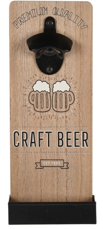 Vtipný otvírák na lahve se zásobníkem na vršky. Otvírák můžete zavěsit na zeď či na dveře.Materiál: dřevo, kovRozměr:výška 30 cmšířka 12 cmhloubka 4,5 cm prečítať celé