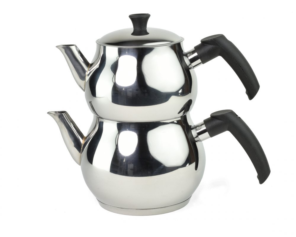 Turecká dvojkonvice caydanlik z nerezové oceli pro přípravu tradičního tureckého čaje rize. Nepostradatelná výbava každého milovníka rize.