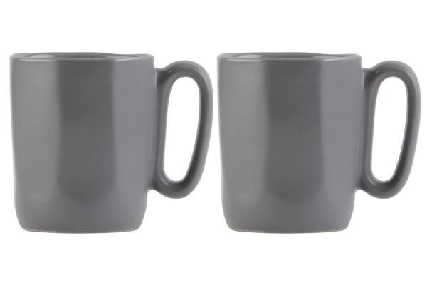 Sada 2 keramických hrnků s ouškem:barva: šedá,na espresso,jednoduchý čistý design,tvar oktagonu,možno mýt v myčce i ohřívat v MW troubě,rozměr: 80x115 mm.      prečítať celé