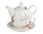 Porcelánový set konvičky, šálku a podšálku pro přípravu čaje pro jednu osobu.Parametry:Výška kompletu: 14 cmPrůměr šálku: 10,5 cmPrůměr podšálku: 14,5 cmObjem konvičky a šálku: 400 mlKonvička má vnitřní sítko u hubice prečítať celé