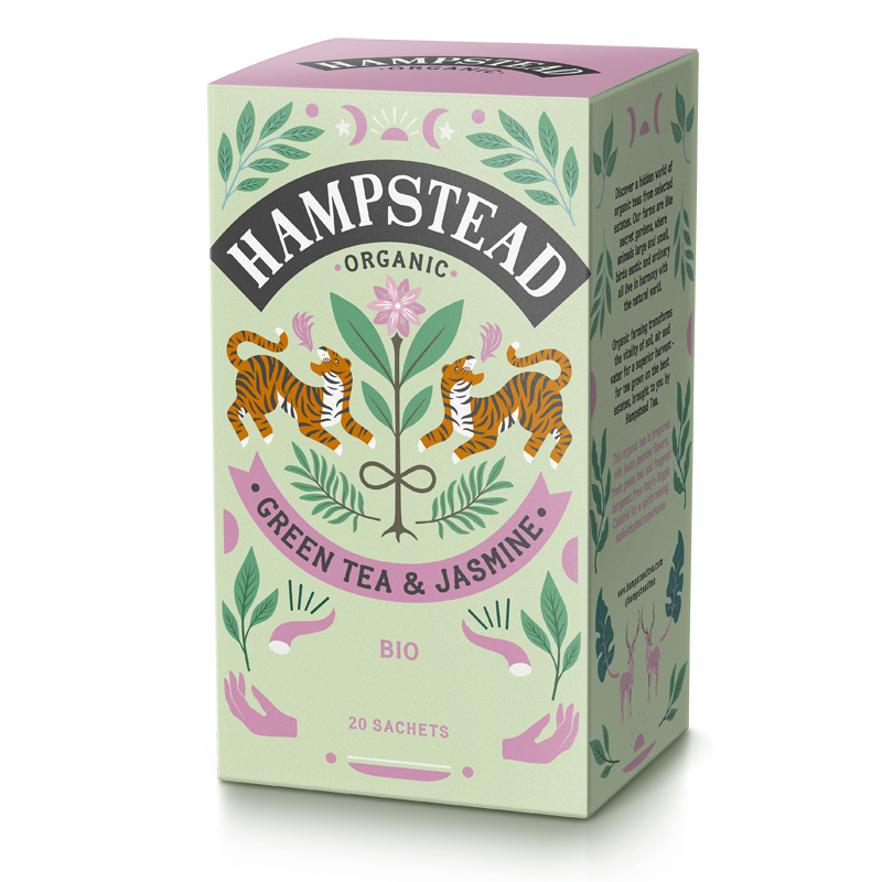 BIO zelený čaj s jasmínem a bergamotem Hampstead Tea London 20ks. BIO sáčkový čaj. prečítať celé
