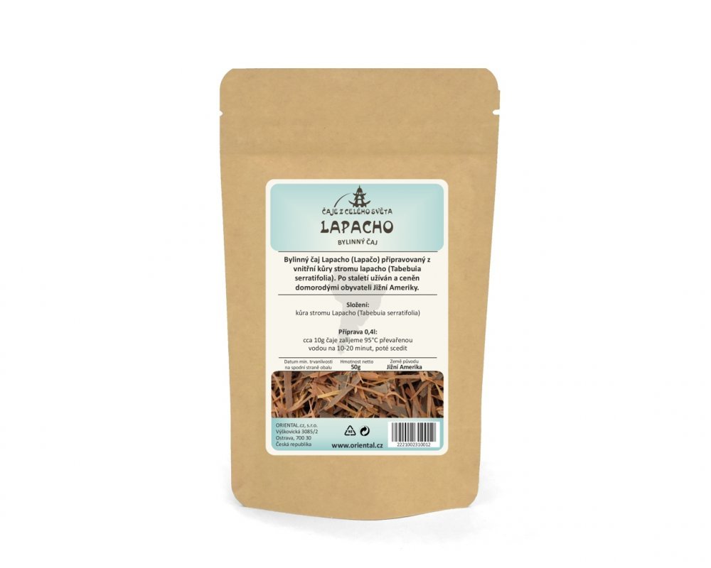 Bylinný čaj Lapacho (Lapačo) připravovaný z vnitřní kůry stromu lapacho (Tabebuia serratifolia). Po staletí užíván a ceněn domorodými obyvateli Jižní Ameriky. Lapacho se přirozeně vyskytuje v Brazílii, Peru, Bolívii a severní Argentině. Kvete nápadnými fialovými kvítky a dožívá se až 700 let....