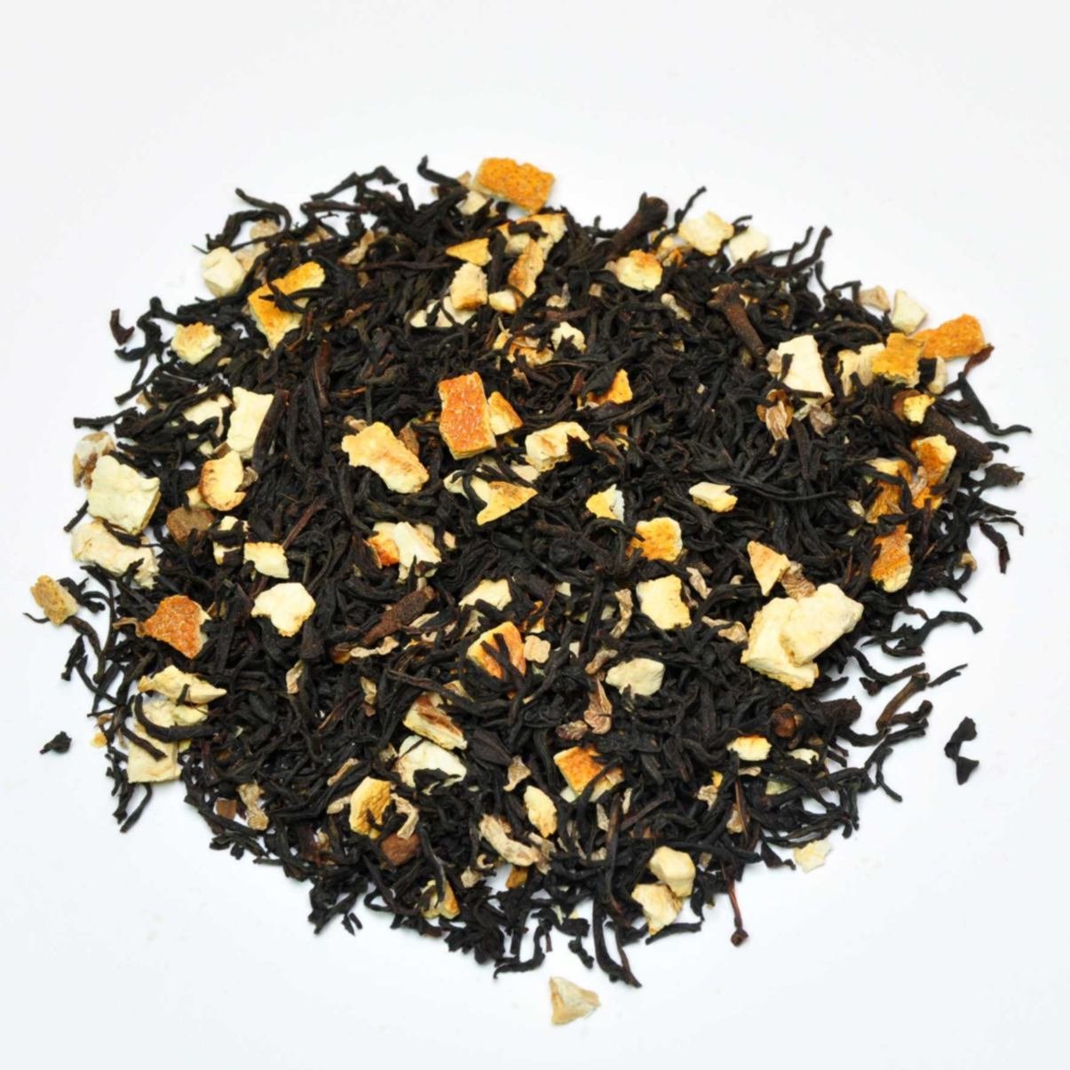 Složení: pravý černý čaj, pomerančová kůra 11 %, přírodní aroma, citrónová kůra, skořice kůra 2,4 %, hřebíček 1,8 %