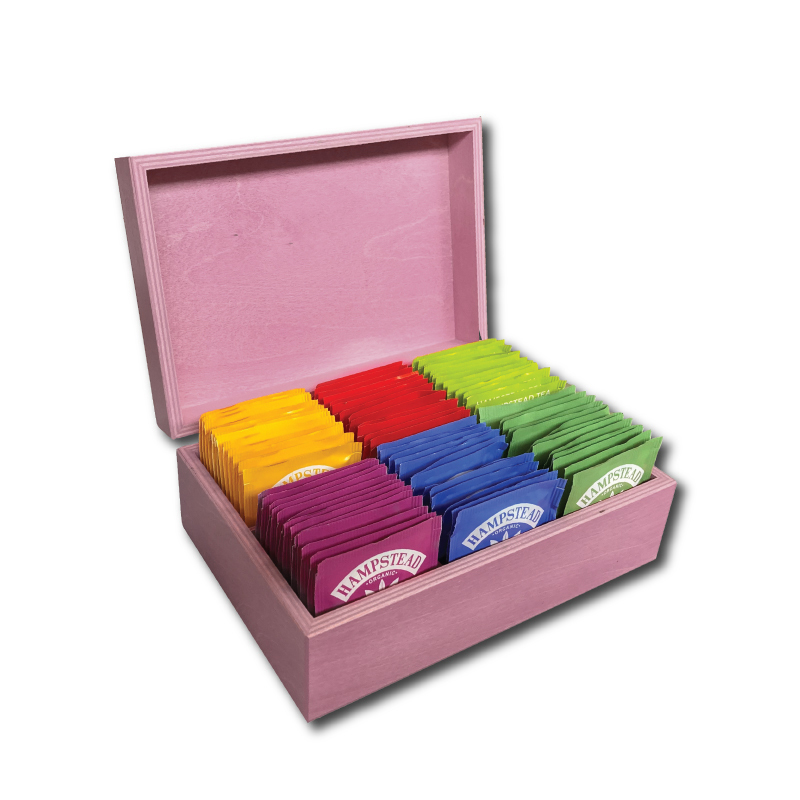 Hampstead Tea luxusní růžová dřevěná kazeta mix sáčkových BIO čajů 78ks - 6 druhů*