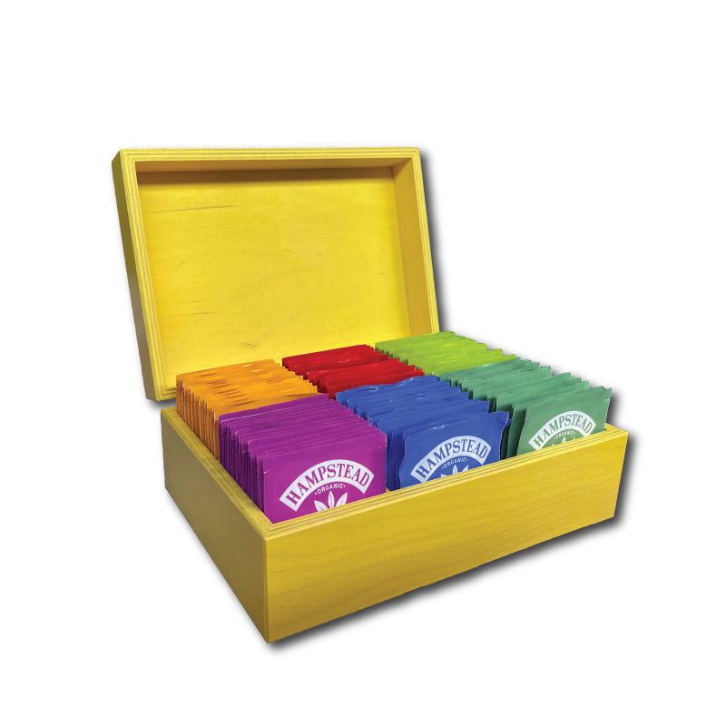 Hampstead Tea luxusní hořčicová dřevěná kazeta mix sáčkových BIO čajů 78ks - 6 druhů*