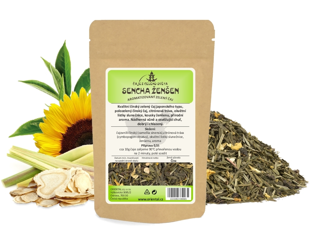 Zelený aromatizovaný čaj Sencha Ženšen 50 g