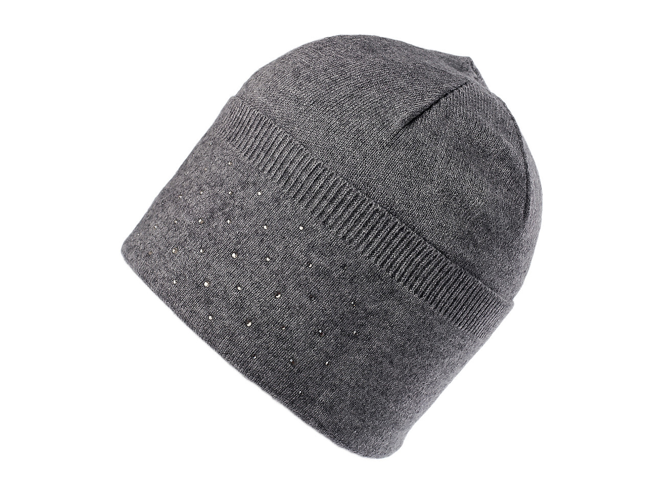 Dámská čepice s kamínky - 1 ks - 4 šedá