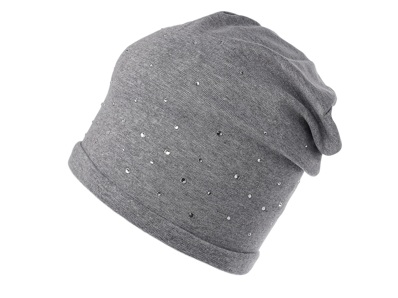 Bavlněná čepice s kamínky dámská - 1 ks - 2 šedá