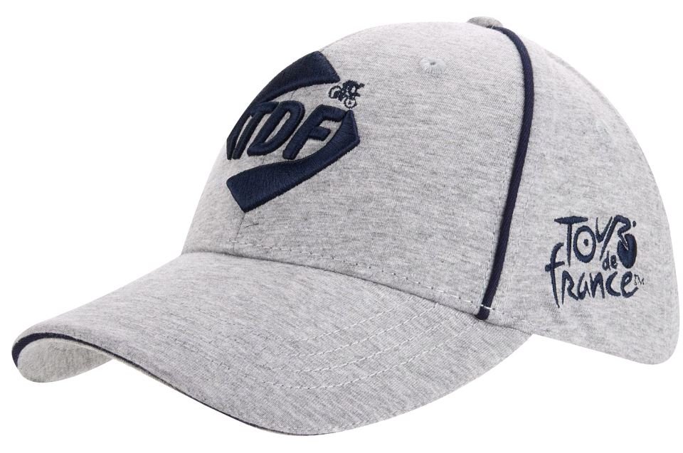 Šedá kšiltovka s písmenovým logem TDF cyklistického závodu Tour de France.