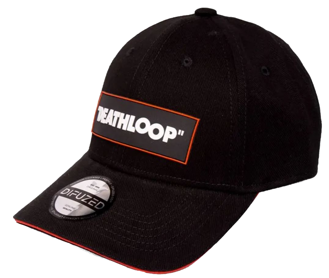 Atraktivní černá baseballová kšiltovka s logem Deathloop. Kšiltovka má na zadní straně kovovou sponu, která slouží k nastavení požadované velikosti.