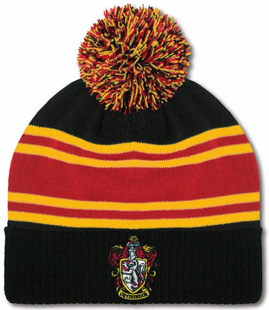 Černá zimní čepice s bambulkou v motivu koleje Gryffindor (Nebelvír) z filmové ságy Harry Potter.