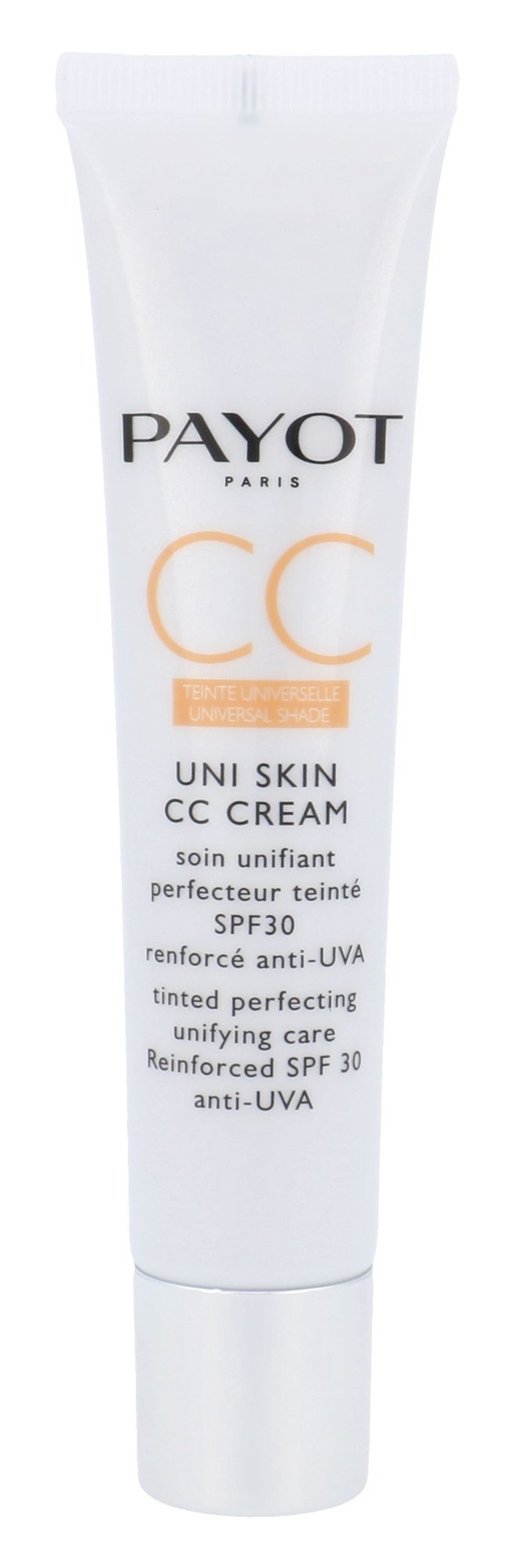 CC krém Payot Uni Skin SPF30.CC krém Payot Uni Skin SPF30 okamžitě sjednocuje pleť a redukuje nedokonalosti. Účinně bojuje proti pigmentovým skvrnám, zarudnutí a mdlé pleti. Rozjasňuje pleť a ihned se přizpůsobí každému tónu pleti. Ochranný faktor SPF30 chrání pleť před slunečním zářením....