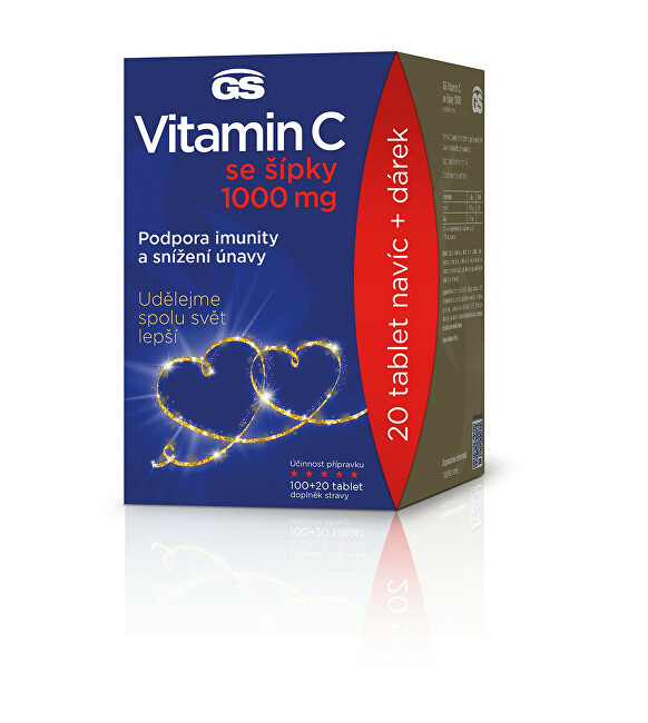 GS Vitamin C1000 + šípky 100 je extra silný vitamin C obohacený o přírodní sílu šípků. V unikátní TIME-RELEASE tabletě s postupným uvolňováním. Vitamin C podporuje imunitu a přispívá ke snížení míry únavy a vyčerpání.Dávkování:Užívejte 1 - 2 tablety denně. prečítať celé