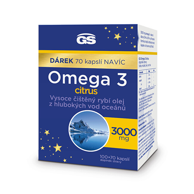 GS Omega 3 Citrus + D3 - 3000 mg vysoce čištěného rybího oleje v denní dávce.Dávkování:Užívejte 1-3 kapsle denně během jídla. prečítať celé