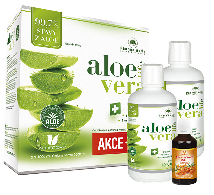 Pharma Activ Akční SET Aloe Vera Life 1000 ml 1+1 s příbalem 100% Rakytníkový olej 50 ml