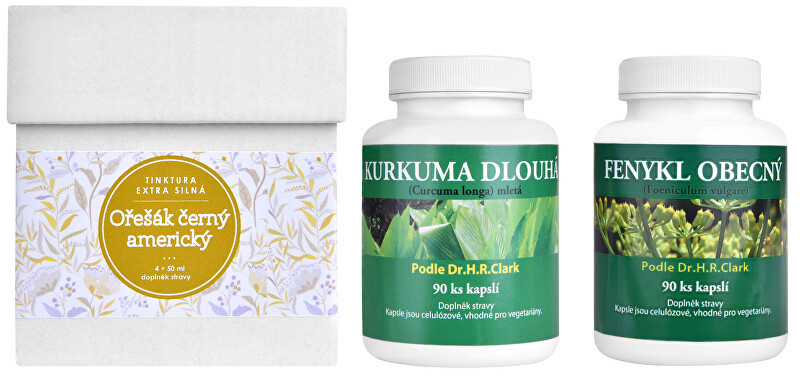 Střevní očistná kúra - Balení obsahuje: Ořešák černý-americký 2 x 50ml, Kurkuma dlouhá 90 tobolek, Fenykl obecný 90 tobolek prečítať celé