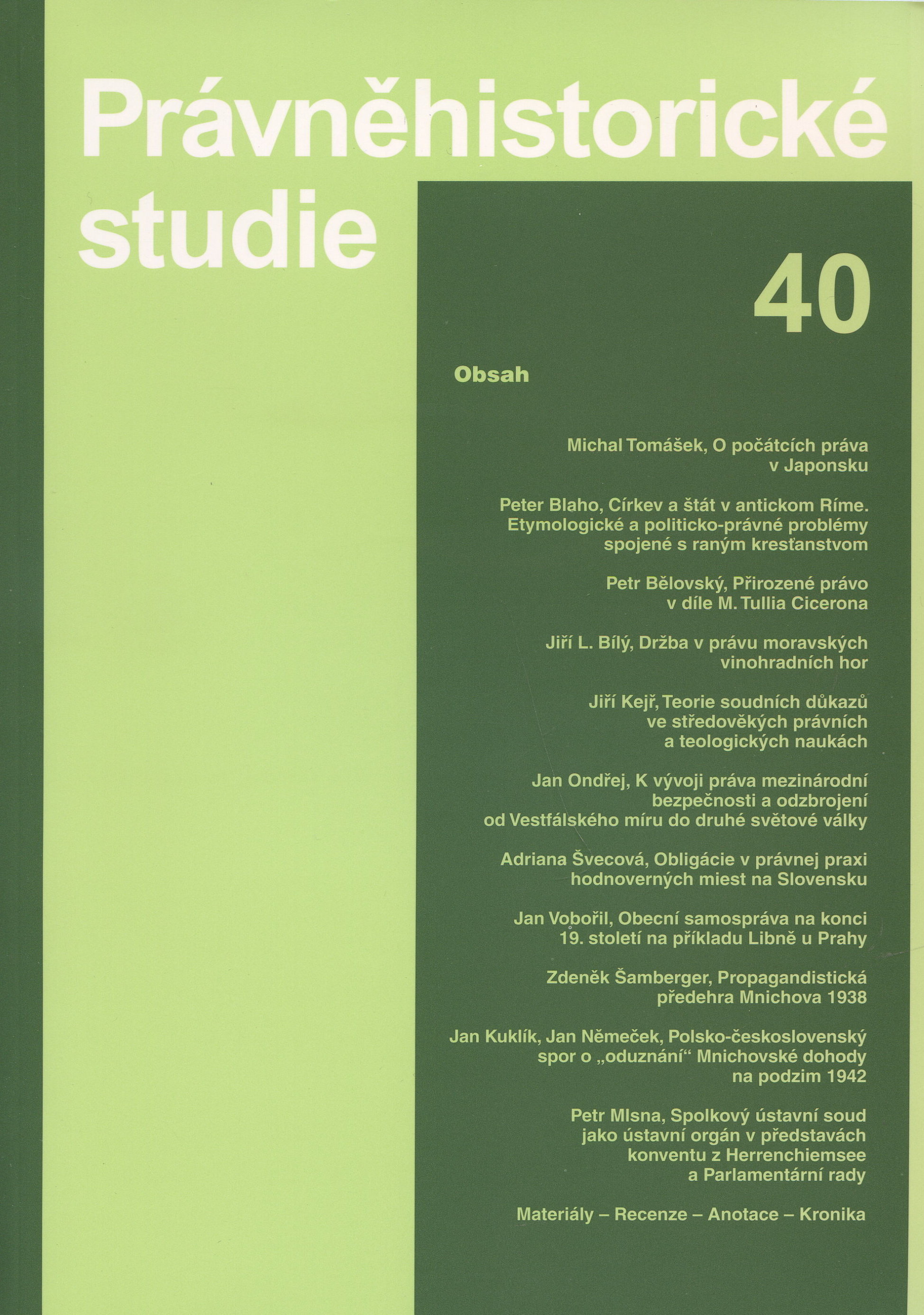 Čtyřicátý svazek Právněhistorických studií vychází po 52 letech od vydání prvního čísla. Po více než půl století tato publikace plní úlohu jediného českého a slovenského vědeckého sborníku, který přináší výsledky základního výzkumu v oboru právních dějin, kritické recenze, v rubrice „Z nové...