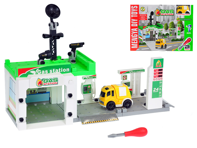 Sestav si svoji vlastní benzínovou stanici - pomocí šroubů a šroubováku. Šroubovací čerpací stanice má i svoji restauraci s občerstvením pro motoristy. Natankujte benzín a můžete vyrazit na další cesty.  Sada obsahuje 57 dílků + 1 auto na setrvačník. prečítať celé