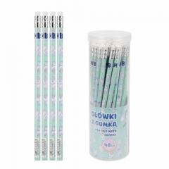 Ołówek nie łamie się podczas strugania, a gumka nie brudzi, ołówki to podstawowy produkt podczas nauki w szkole (rysowanie, matematyka, pisanie), łatwe w struganiu, nie łamią się, nie brudzą, uniwersalna twardość HB, każdy ołówek wyposażony w gumkę do mazania. Zestaw 48 ołówków z gumką...