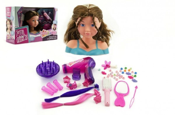 Česací hlava s doplňky plast v krabici 40x27x14cm