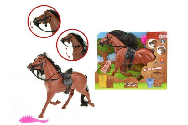 Kůň hnědý česací s hřebenem plast na baterie se zvukem v krabičce 25x20x6cm