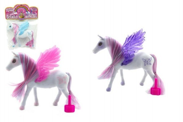 Kůň s křídly česací fliška 16cm asst 3 barvy v sáčku