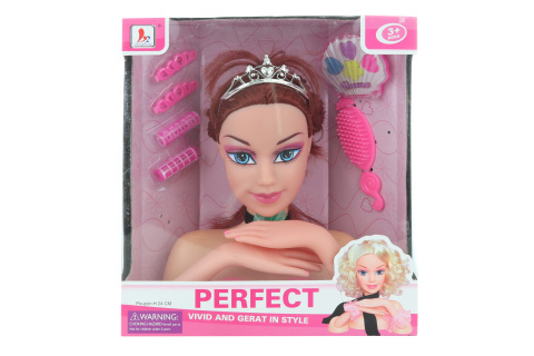 Česací hlava velká o rozměrech cca 26 x 18 cm. Součástí balení je kartáč, spony, natáčky a líčidla. Rozměry balení cca 27 x 30 x 14 cm. Věk 3+ prečítať celé
