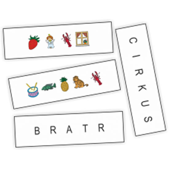 Dítě analyzuje první hlásku z obrázku, zapíše na papír či tabulku, po analýze všech hlásek z obrázků složí celé slovo. Slovo zapíše. Otočením kartičky zkontroluje výsledné slovo. Využití:1. na analýzu první hlásky, pojmenování obrázku a zapsání písmena nebo jen ústní analýzu hlásky2. na zapsání první hlásky a syntézu slova3. psaní slov a tvoření vět se slovem4. třídění slov dle významu