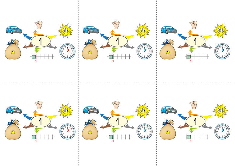Obsahuje celkem 16 listů A4 s myšlenkovými mapami k vyvození písmen A, M, L, E, S, L, P, U, I a číslic 0–5. Každý list je určen k rozstříhání na 6 stejných částí, každá část obsahuje z jedné strany kompletní myšlenkovou mapu k danému písmenu (číslici) a z druhé strany jeden dílčí obrázek z ní....