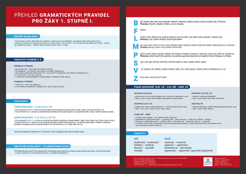 Přehled gramatických pravidel pro žáky 1. stupně I. - Přehledová tabulka učiva (česky)
