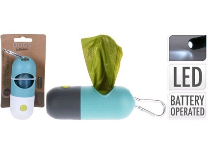 Zásobník na sáčky DOGS s LED světlem a karabinou.