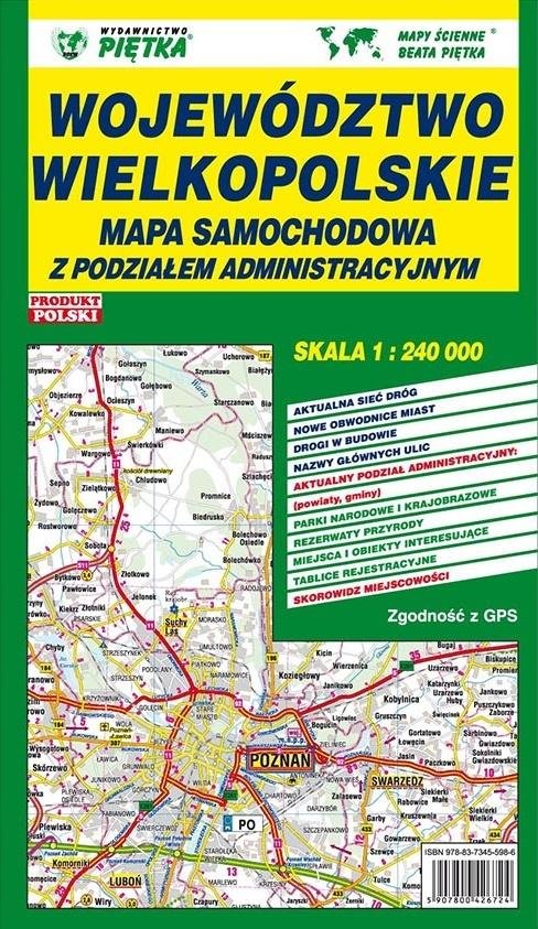 Dzięki mapie składanej województwa wielkopolskiego znajdziemy wiedzę na temat autostrad i dróg, także tych w budowie włącznie z numerami dróg europejskich, autostrad, dróg ekspresowych, dróg krajowych i dróg wojewódzkich. Mapę uzupełniają także dokładne dane administracyjne. Szukającym lokalnych atrakcji i interesujących punktów pozwoli odnaleźć je w okolicy sprawiając, że planowanie wycieczki stanie się prawdziwą przyjemnością dla każdego.