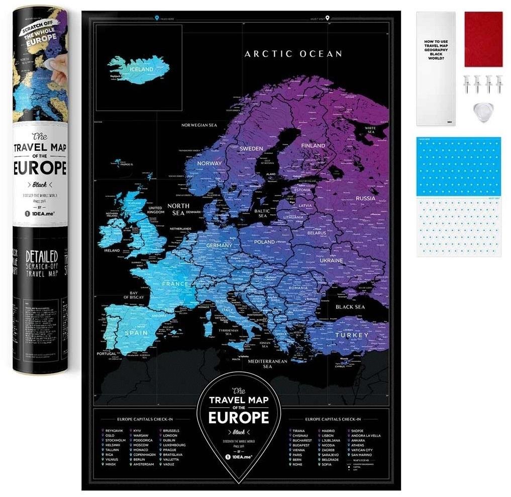 Mapa zdrapka Travel Map(TM) Black Europe to piękna, czarna mapa Europy ze specjalną złotą powłoką do zdrapywania. Możesz z łatwością zaznaczyć państwa, które odwiedziłeś: po prostu użyj dołączonej kostki do zdrapywania aby usunąć złotą zdrapkę tworząc widoczny zapis historii swoich podróży.Możesz...