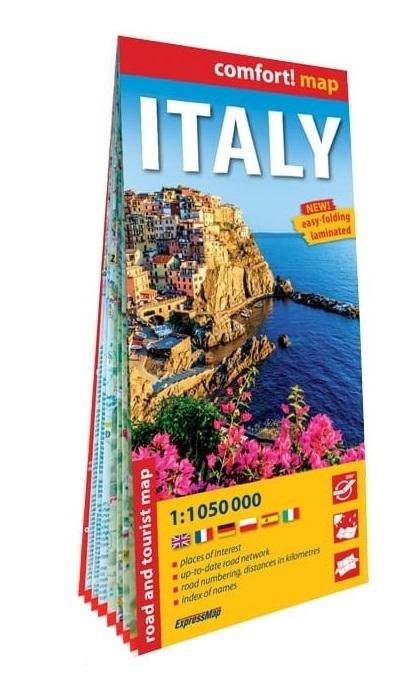 Dwustronnie laminowana, wygodna w składaniu mapa samochodowo-turystyczna Włoch