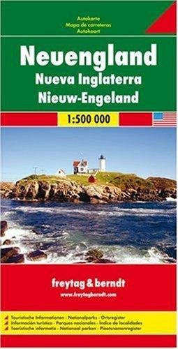 Oboustranná automapa doplněná rejstříkem sídel a legendou v češtině. Vyznačeny silnice s čísly a kilometráží, železniční tahy, turistické zajímavosti, rozhledová místa, oblasti se zajímavými scenériemi, národní parky, kempy atd. Podporuje GPS. Explore New England with this Freytag&Berndt road...