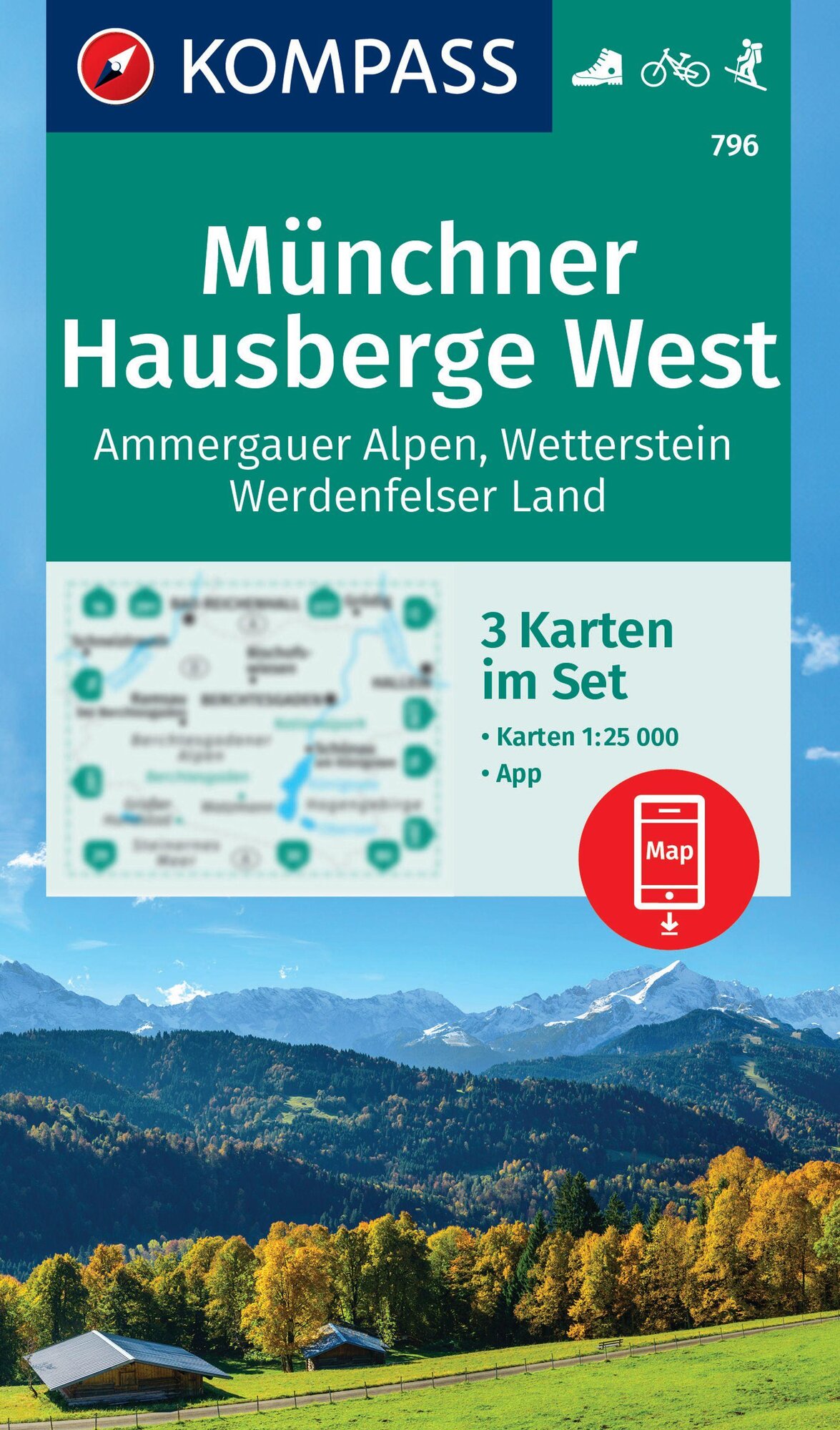 KOMPASS Wanderkarten-Set 796 Münchner Hausberge West, Ammergauer Alpen, Wetterstein, Werdenfelser Land (3 Karten) 1:25.000 (německy)