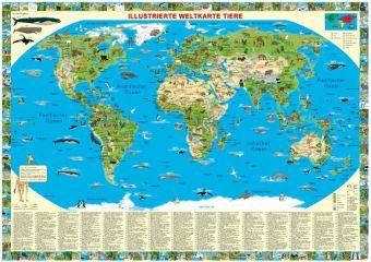 Illustrierte Weltkarte Tiere, Posterkarte (německy)