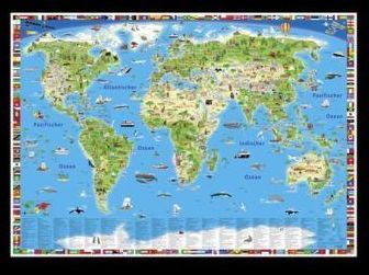 Erlebniskarte illustrierte Weltkarte, Planokarte (německy)